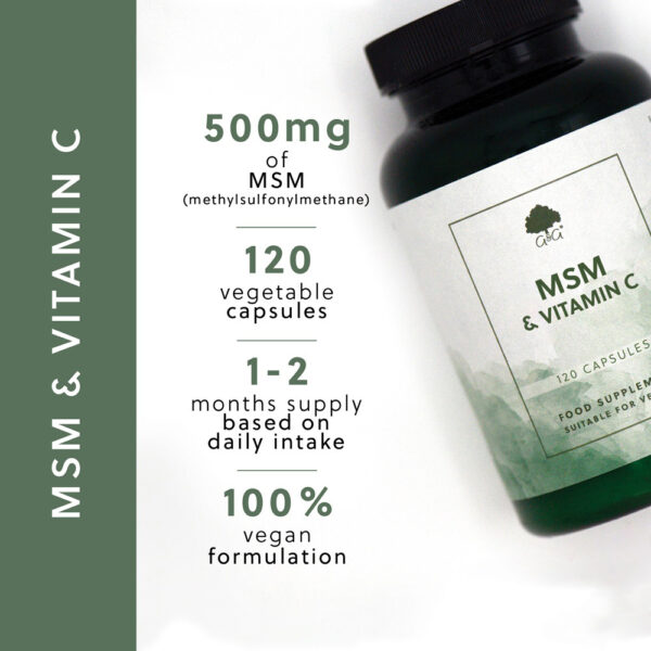 Methylsulfonylmethane (MSM) is a naturally occurring sulphur compound found in green plants such as horsetail, some species of algae, fruits, vegetables, grains and in bovine and human adrenal glands, milk, and urine. MSM is an ordourless metabolite of DMSO.